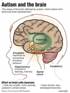 The graphic shows areas of the brain affected by autism, which stems from abnormal brain development; new U.S. Centers for Disease Control and Prevention estimates say 1 in 88 U.S. children has autism spectrum disorder.